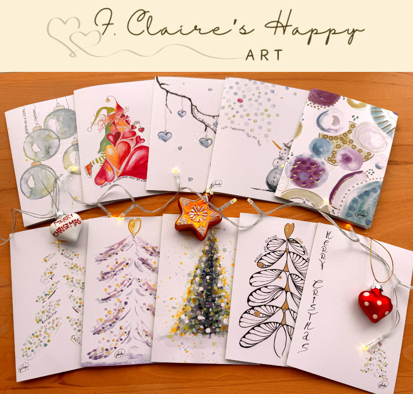 A few golden Christmas card sets are waiting for their happy homes — hand-embellished, dreamy, and sprinkled with festive joy.
