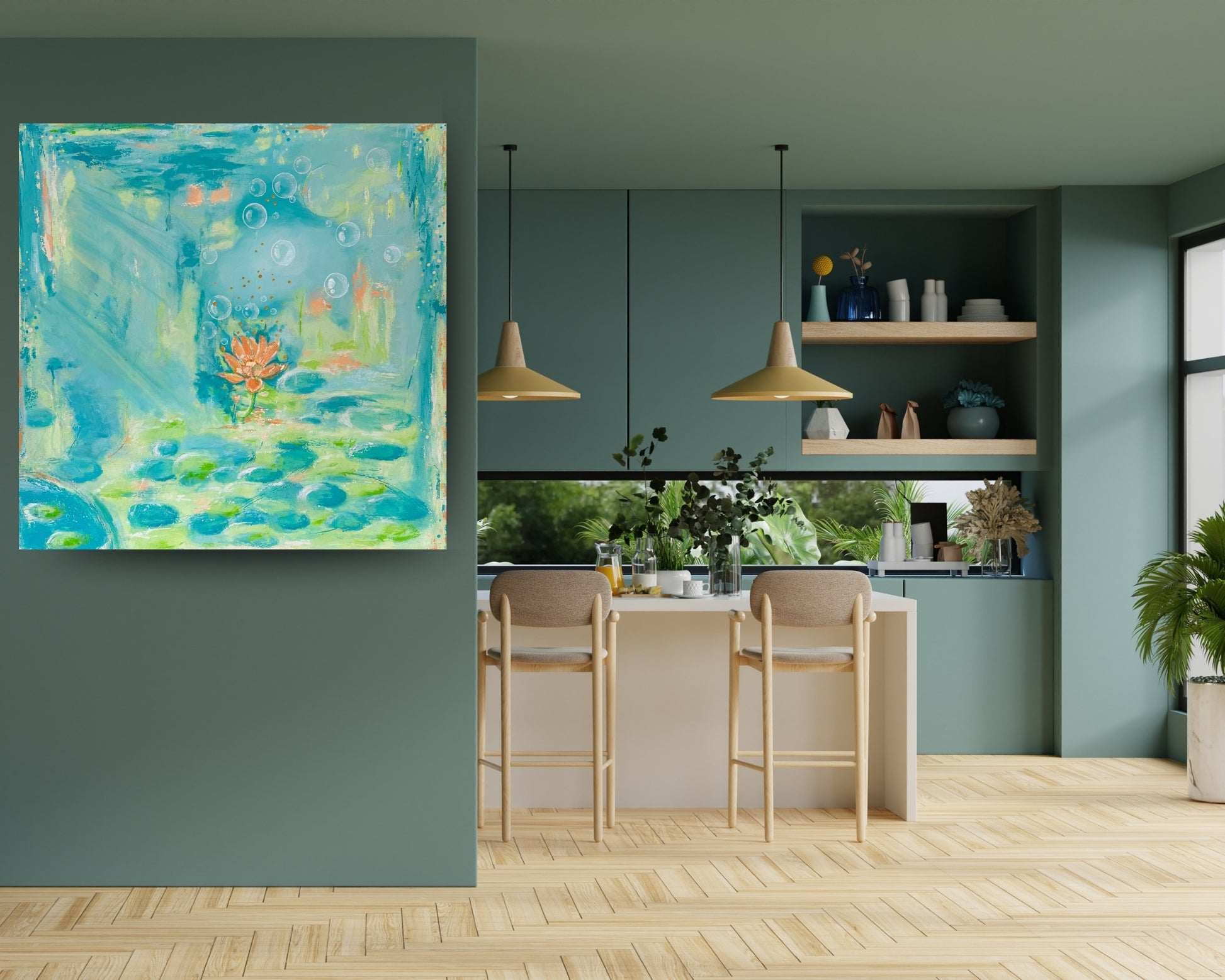 Bursting into Bloom is a joyful original abstract painting designed to brighten up your walls and your day. Uplifting wall art to remind you that colour always blooms—even after a long day.