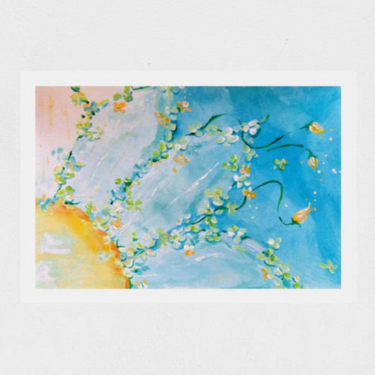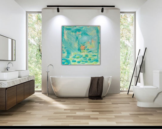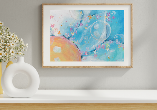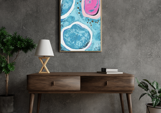 I make colourful, joy-filled art that’s all about adding a little lift to your space (and your mood). Think calming blues, soft shapes, and a cheeky touch of gold that catches the light just right. Like a warm hug for your wall - with a wink.